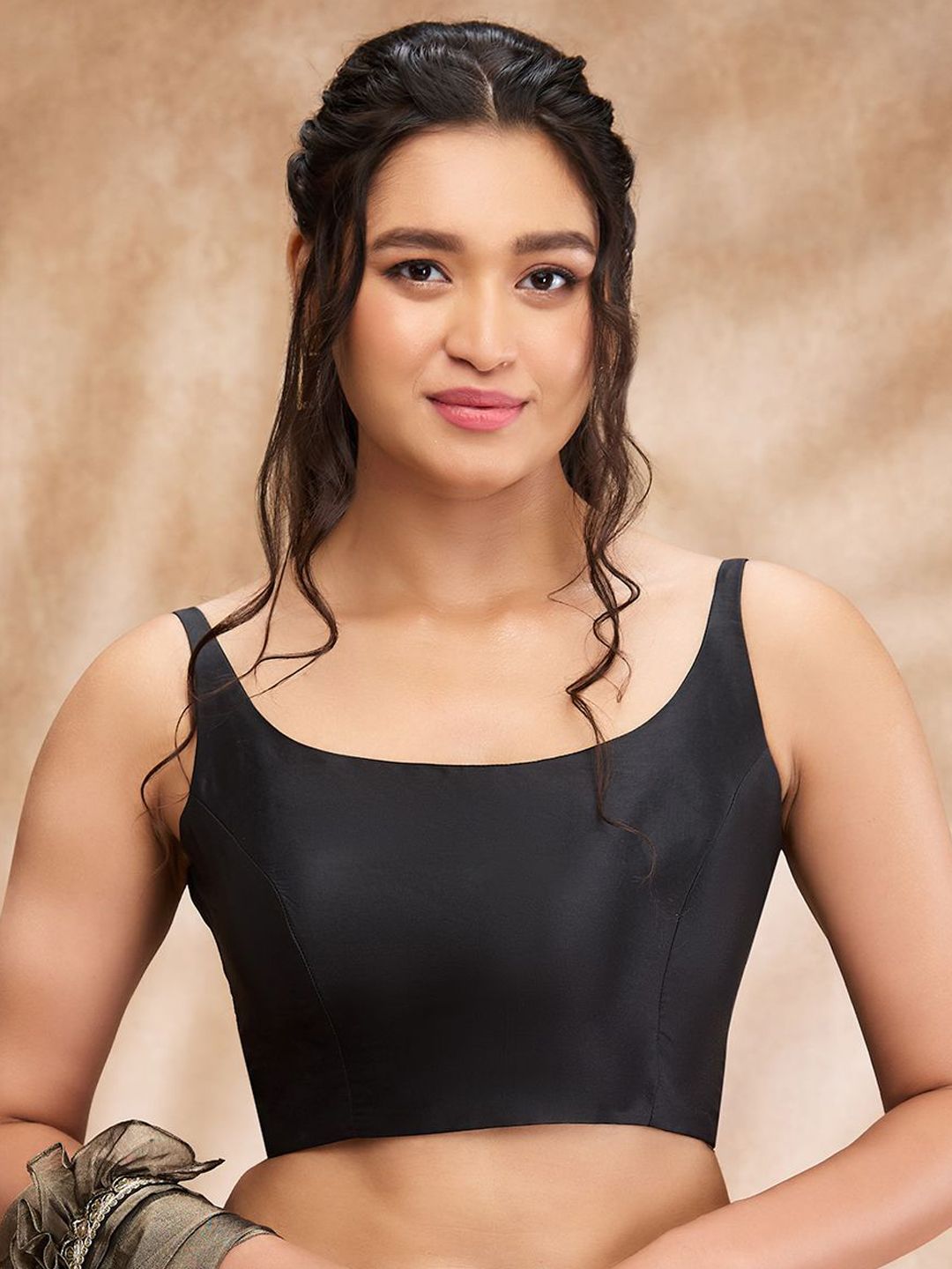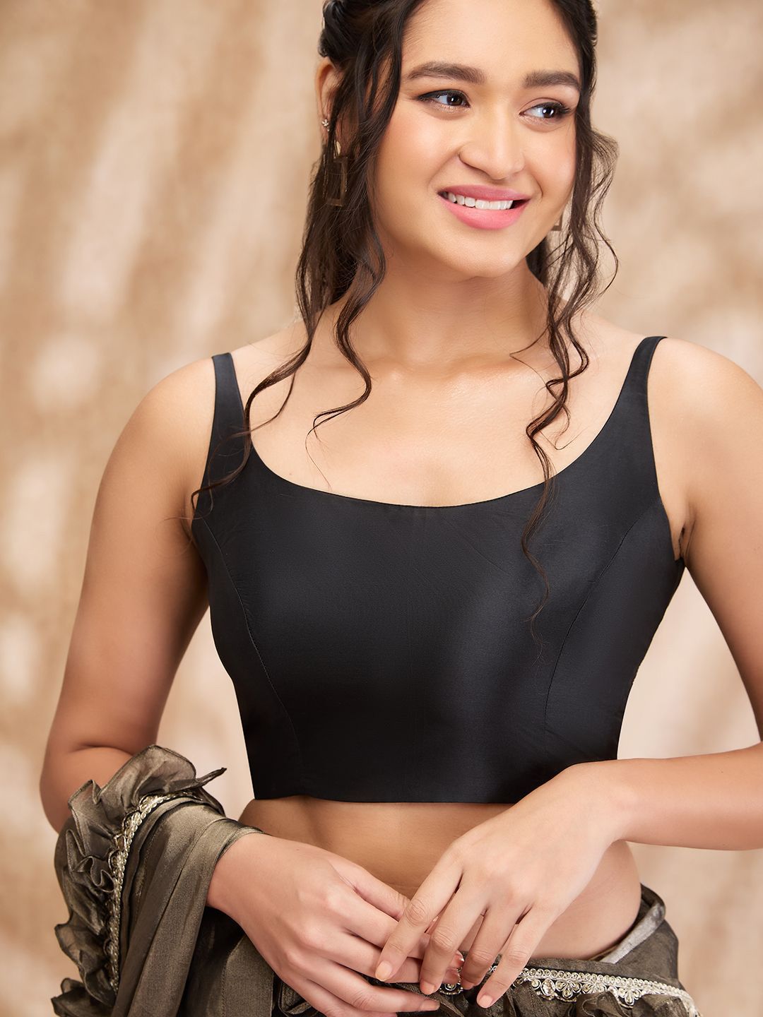 SALWAR STUDIO presents this elegant Black Saree Blouse crafted for Women. Made using premium Other, this outfit features a refined Not Available silhouette, a stylish Round Neck neckline and Sleeveless. The Not Available hemline and Not Available length complete the look. Perfect for Party wear.