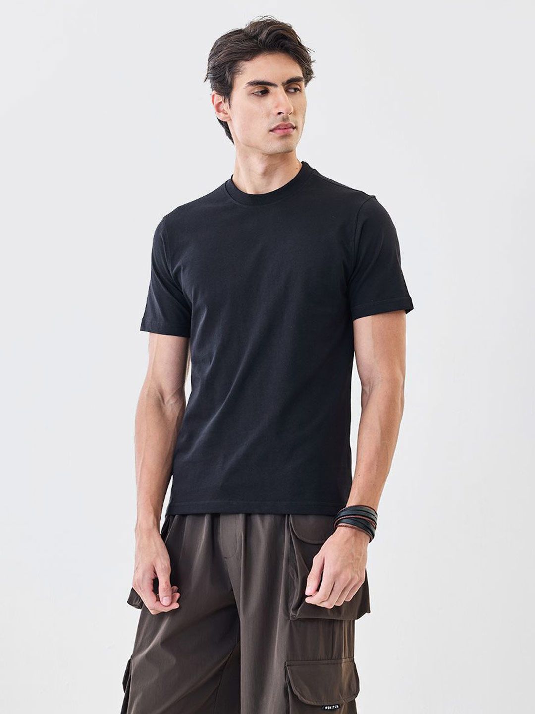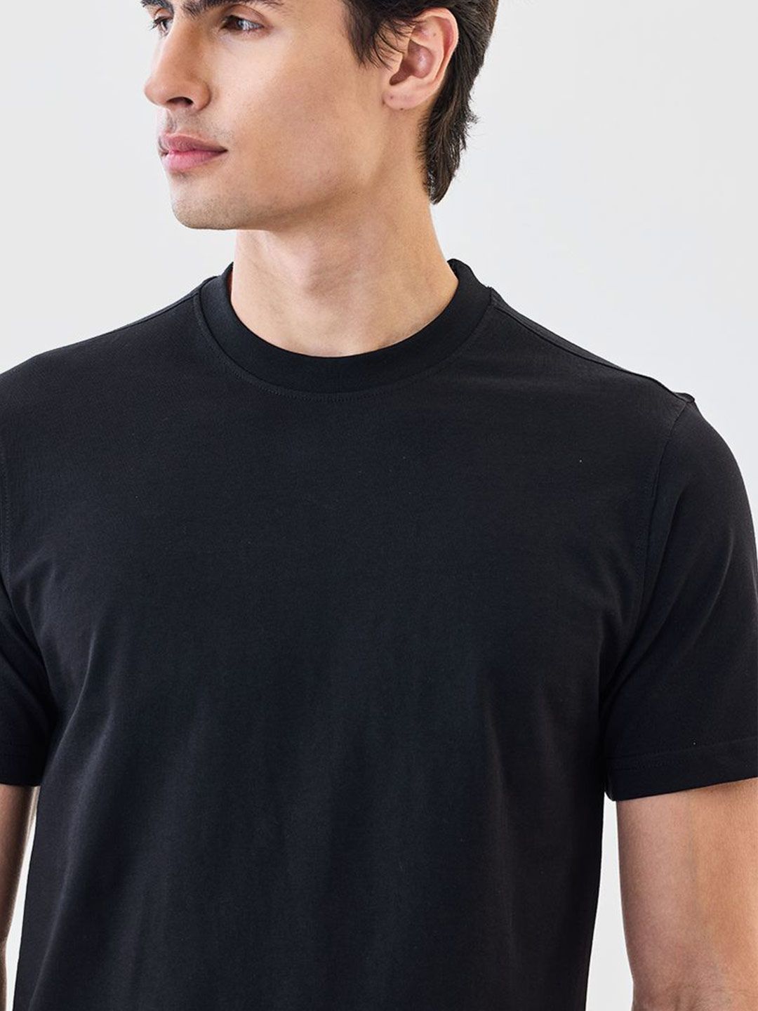Snitch presents this elegant Black Tshirts crafted for Men. Made using premium Cotton, this outfit features a refined Not Available silhouette, a stylish Round Neck neckline and Short Sleeves. The Not Available hemline and Regular length complete the look. Perfect for Casual wear.