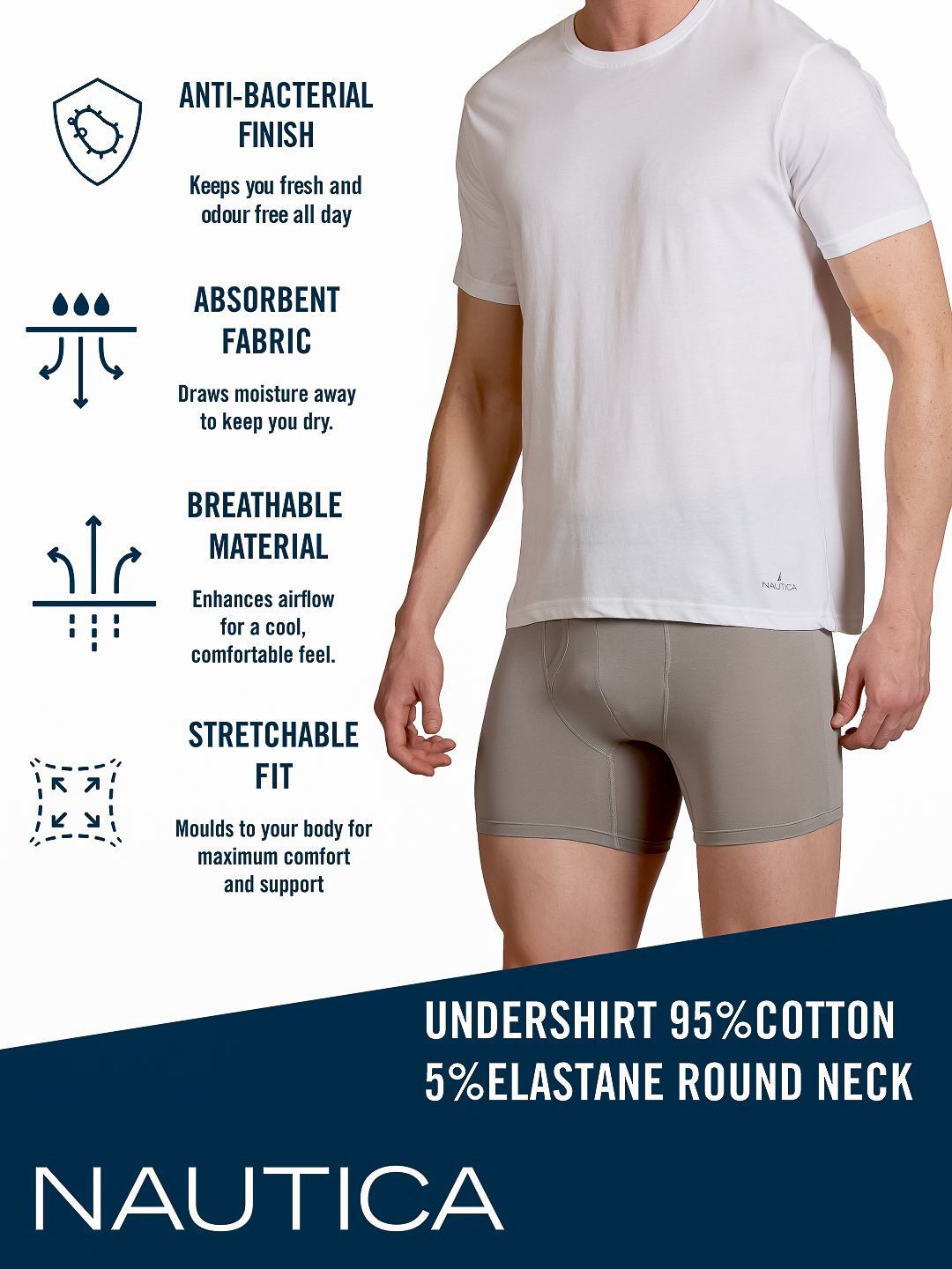 Nautica presents this elegant White Lounge Tshirts crafted for Men. Made using premium Cotton, this outfit features a refined Not Available silhouette, a stylish Round Neck neckline and Short Sleeves. The Not Available hemline and Not Available length complete the look. Perfect for Casual wear.