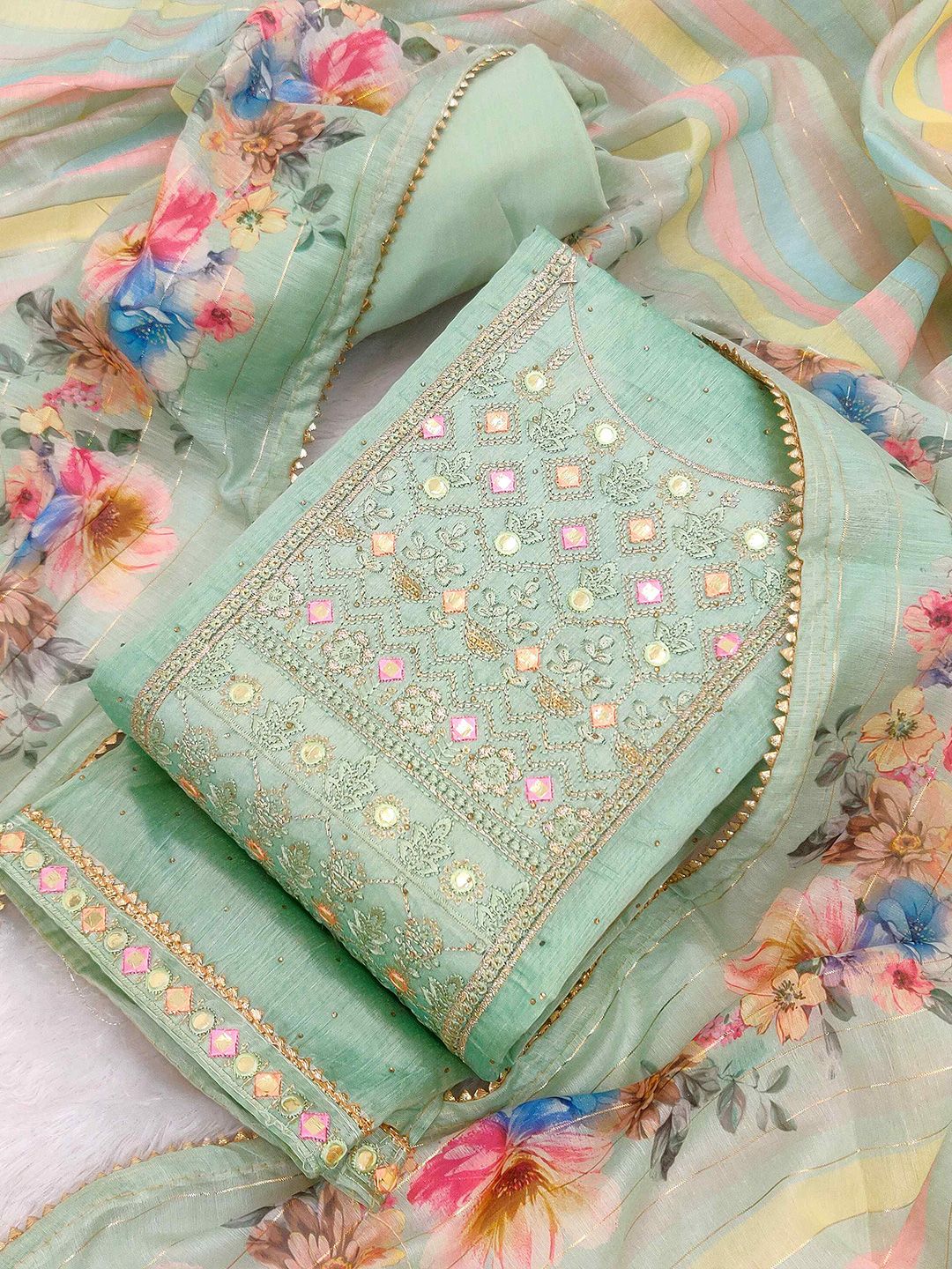TAVAS presents this elegant Green Dress Material crafted for Women. Made using premium Not Available, this outfit features a refined Not Available silhouette, a stylish Not Available neckline and Not Available. The Not Available hemline and Not Available length complete the look. Perfect for Festive wear.