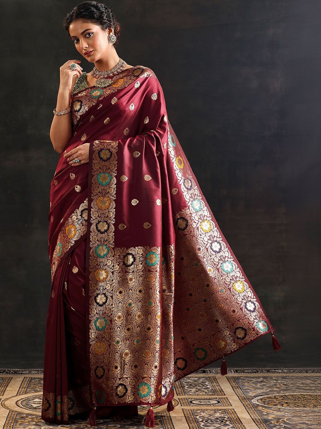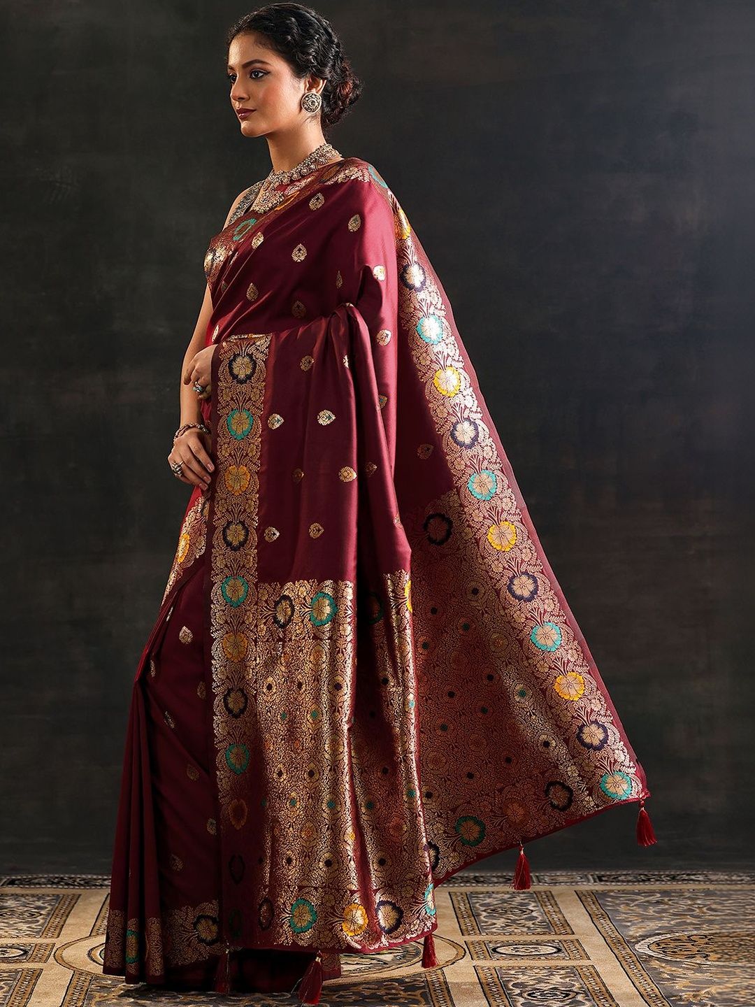 Libas presents this elegant Maroon Sarees crafted for Women. Made using premium Not Available, this outfit features a refined Not Available silhouette, a stylish Not Available neckline and Not Available. The Not Available hemline and Not Available length complete the look. Perfect for Festive wear.
