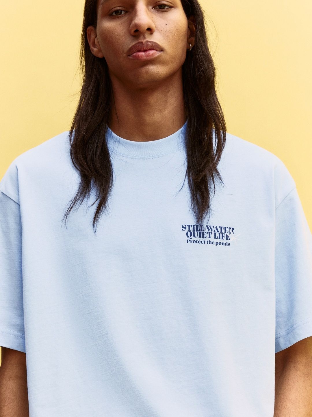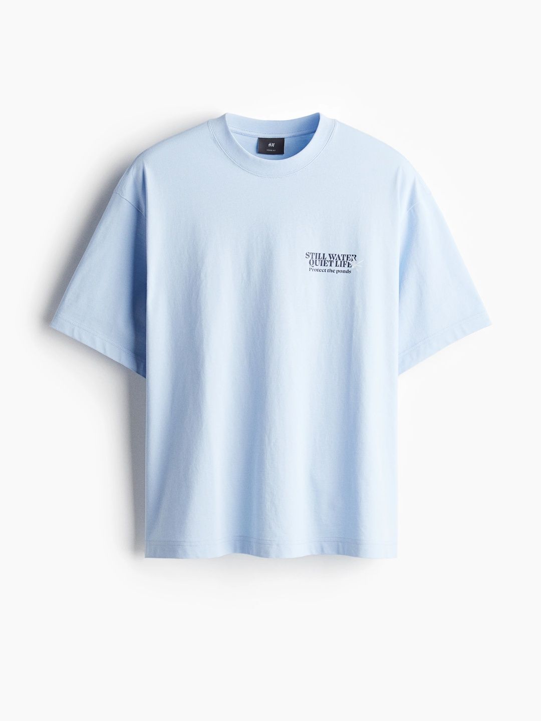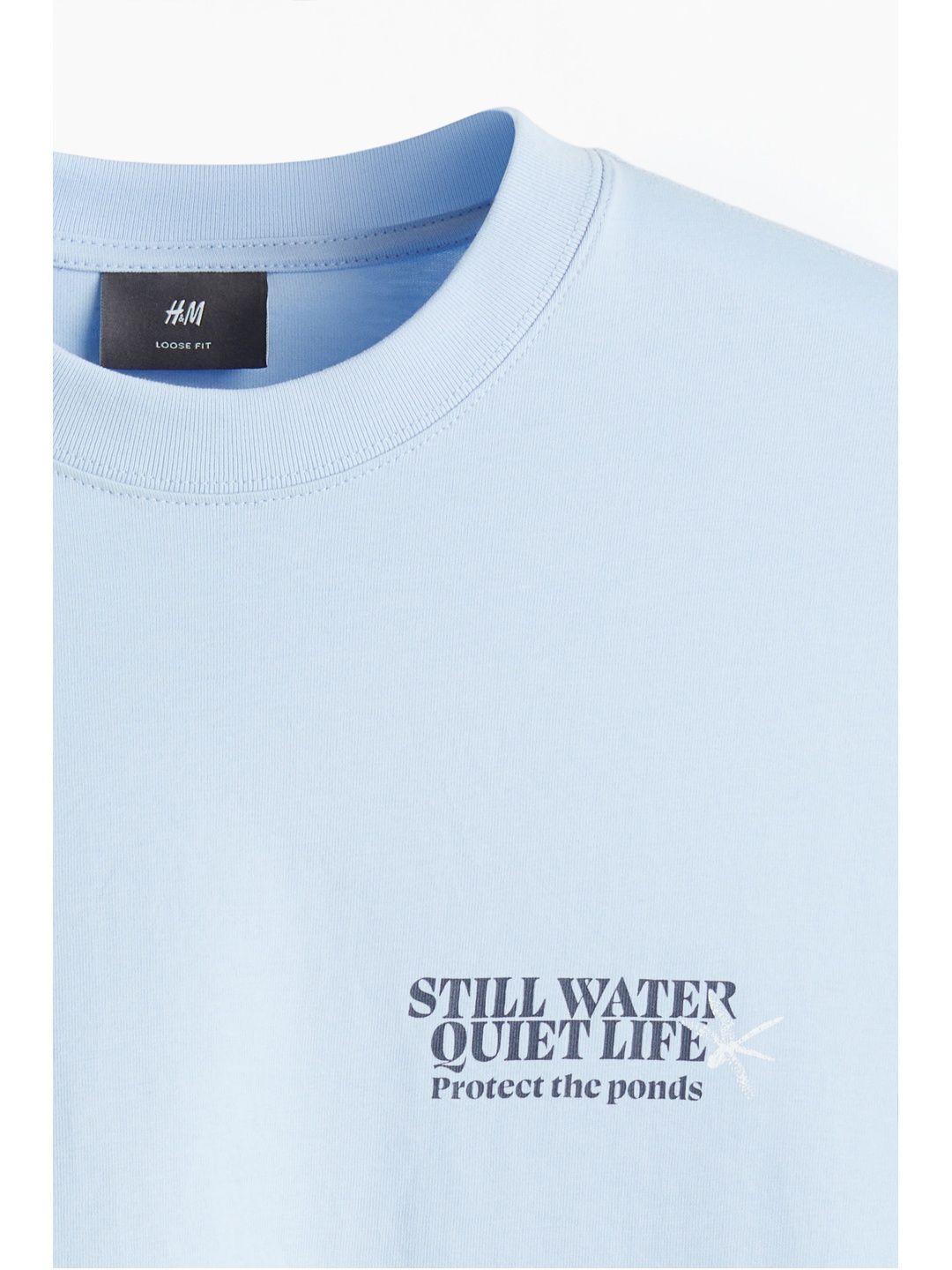 H&M presents this elegant Blue Tshirts crafted for Men. Made using premium Cotton, this outfit features a refined Not Available silhouette, a stylish Round Neck neckline and Short Sleeves. The Not Available hemline and Regular length complete the look. Perfect for Casual wear.
