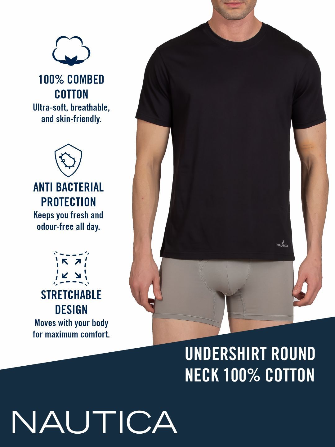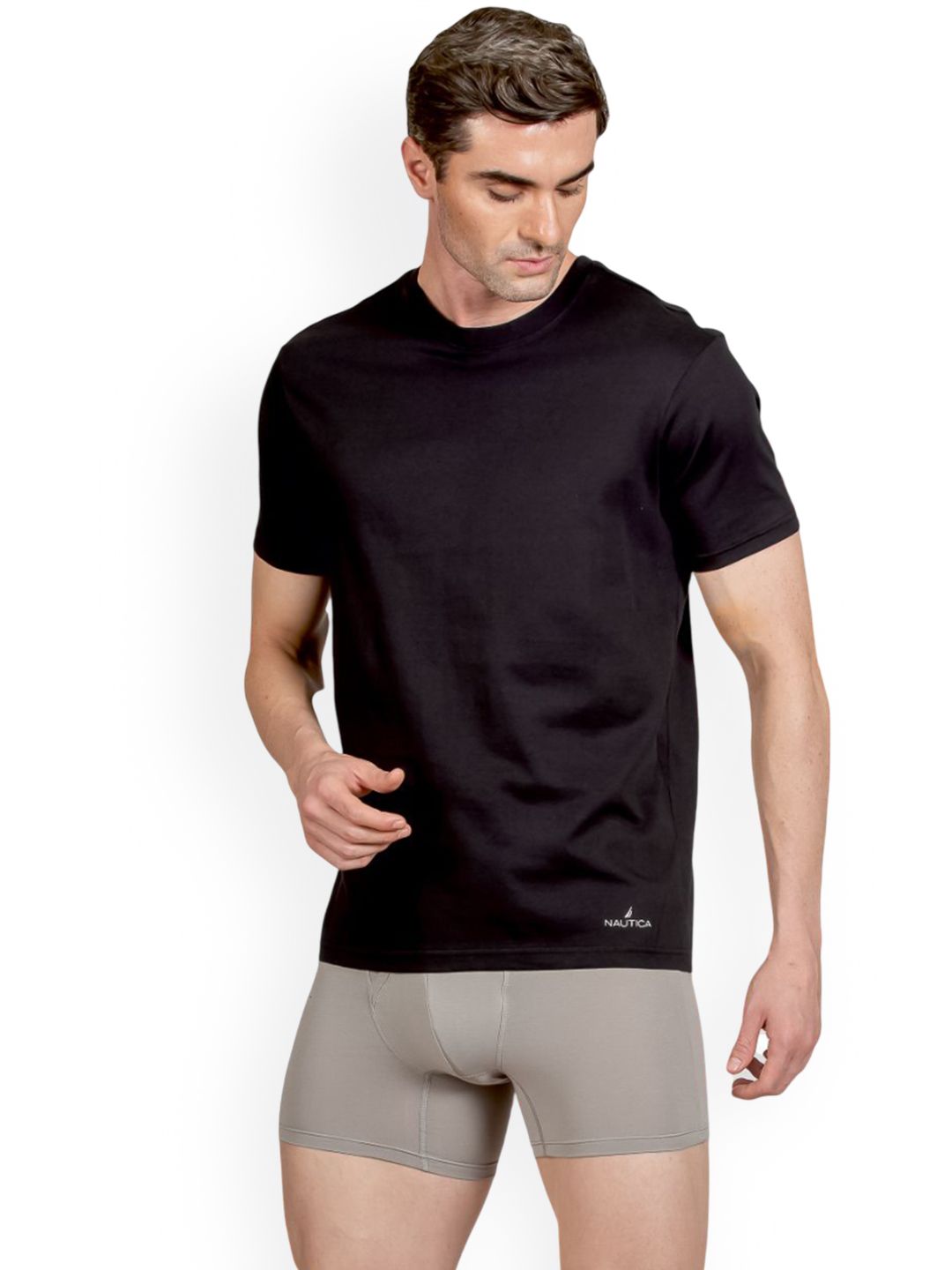 Nautica presents this elegant Black Lounge Tshirts crafted for Men. Made using premium Cotton, this outfit features a refined Not Available silhouette, a stylish Round Neck neckline and Short Sleeves. The Not Available hemline and Not Available length complete the look. Perfect for Casual wear.