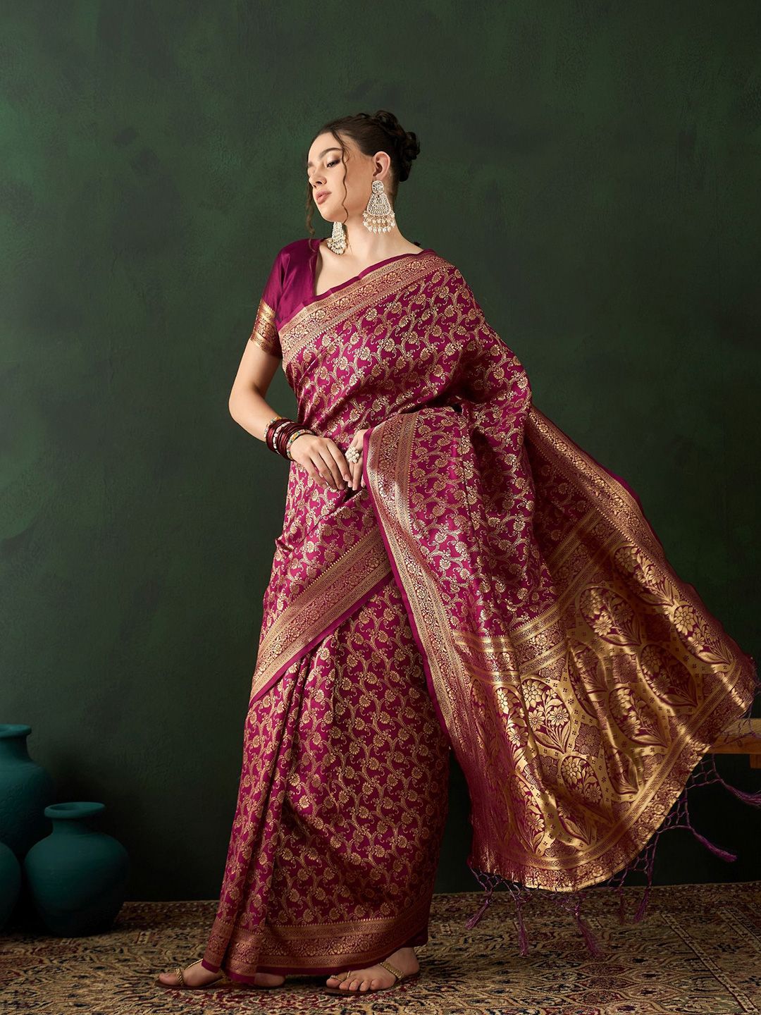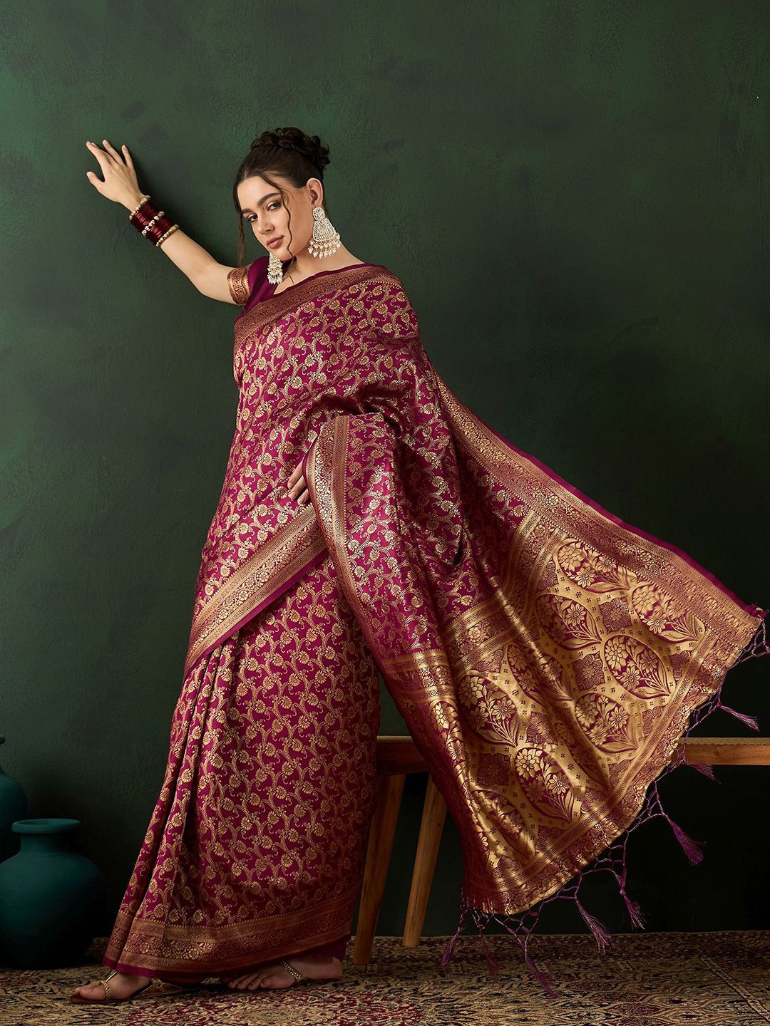 Sangria presents this elegant Burgundy Sarees crafted for Women. Made using premium Not Available, this outfit features a refined Not Available silhouette, a stylish Not Available neckline and Not Available. The Not Available hemline and Not Available length complete the look. Perfect for Festive wear.