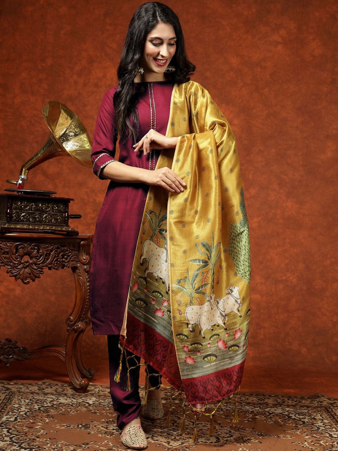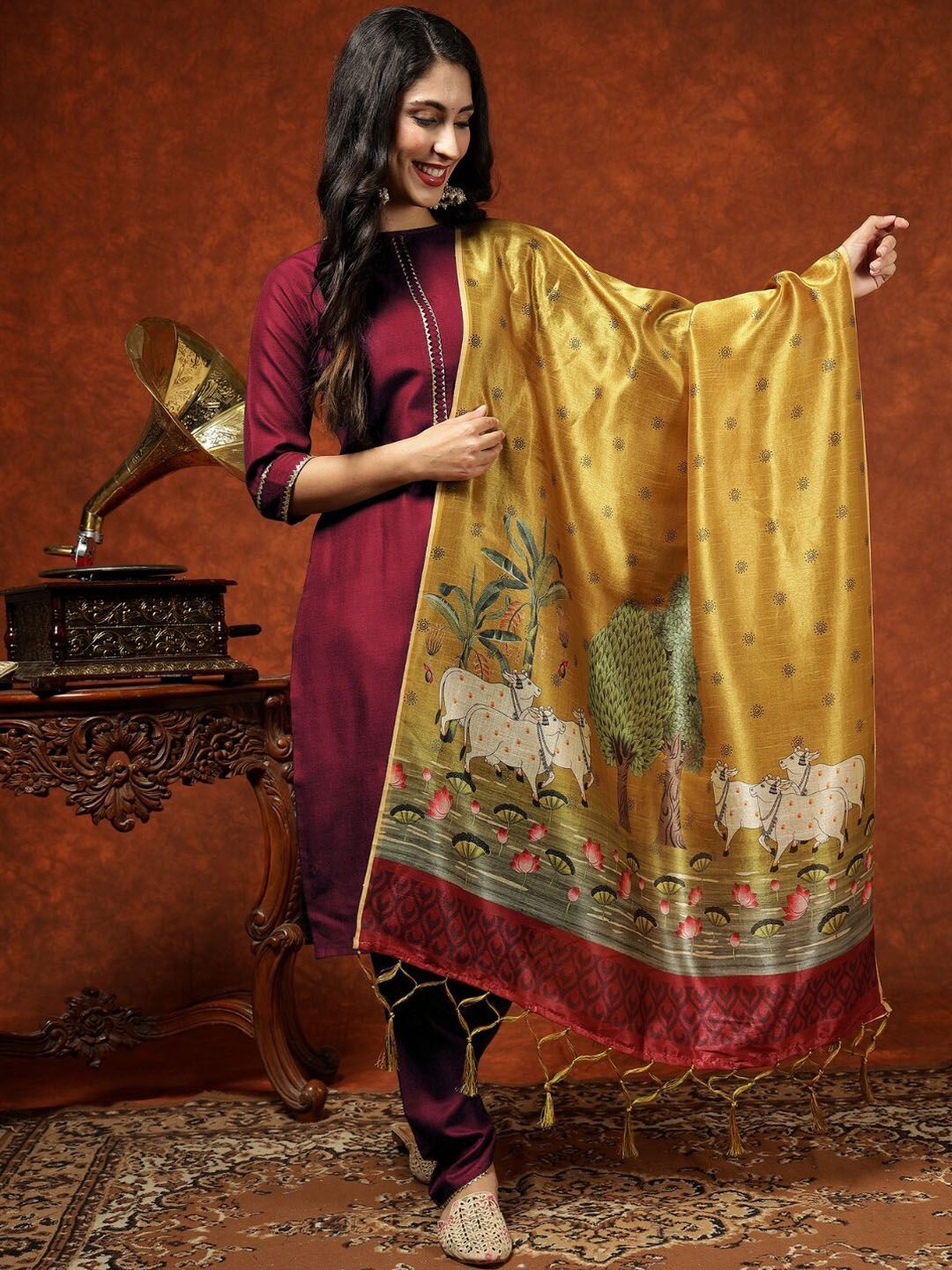 KALINI presents this elegant Red Kurta Sets crafted for Women. Made using premium Not Available, this outfit features a refined Not Available silhouette, a stylish Boat Neck neckline and Three-Quarter Sleeves. The Not Available hemline and Not Available length complete the look. Perfect for Festive wear.